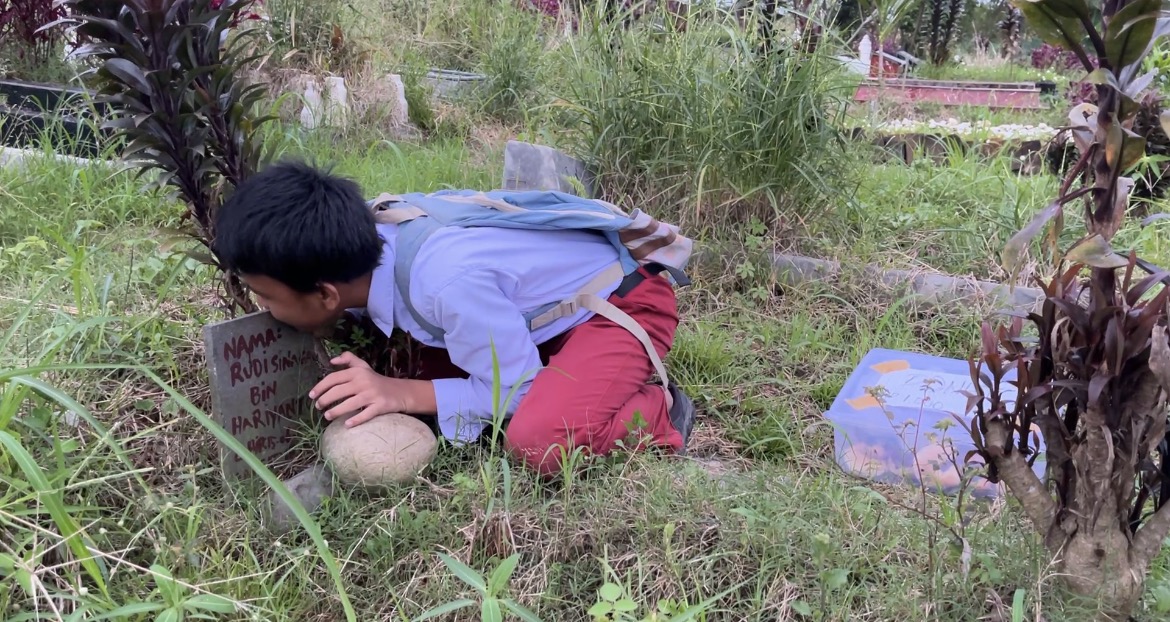 Di tengah perjuangannya, Rian juga kerap dibully karena usia yang lebih tua dari teman-teman sekelasnya. Namun ia memilih diam, sabar, dan tetap belajar. Saat hatinya benar-benar lelah, Rian hanya bisa datang ke makam ayahnya untuk bercerita dan melepas rindu.
